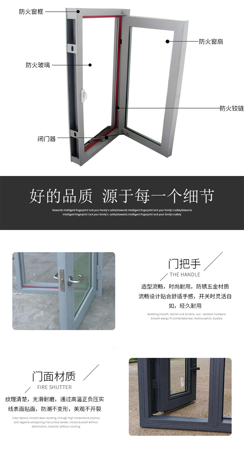 隔熱防火窗一般采用灌漿復(fù)合型防火玻璃。這種防火玻璃是用防火液注入玻璃中間,防火液遇到火災(zāi)之后固化,形成一堵白色的墻,達(dá)到阻擋火勢(shì)蔓延和隔熱的效果。 非隔熱防火窗采用的是6-19mm的單片防火玻璃,耐火時(shí)間較復(fù)合型防火玻璃短,不具隔熱功能,但仍是滿足國家標(biāo)準(zhǔn)的產(chǎn)品,根據(jù)需要可采用單片、中空、三玻兩腔的加工方式。 隔熱防火窗耐火時(shí)間一般可達(dá)到1.5小時(shí)-3小時(shí);非隔熱防火窗耐火極限為60分鐘。 隔熱防火窗一般采用鋼質(zhì),窗體框架可采用鍍鋅或不銹鋼板材制作而成,開啟方式采用固定式還是活動(dòng)式,根據(jù)需求定制。隔熱防火窗框架一般采用鋁合金、玻璃鋼、塑鋼或鋼質(zhì)型材。 隔熱防火窗由于防火液抗太陽輻射能力較弱,因此主要運(yùn)用在室內(nèi)需要達(dá)到甲級(jí)防火窗耐火要求的部位。非隔熱防火窗耐候性好,主要運(yùn)用在建筑外墻窗戶或長期紫外線照射的地方。例如:玻璃幕墻、外墻防火窗等。 隔熱防火窗的成本高于非隔熱防火窗,因此隔熱比非隔熱的價(jià)格要高。